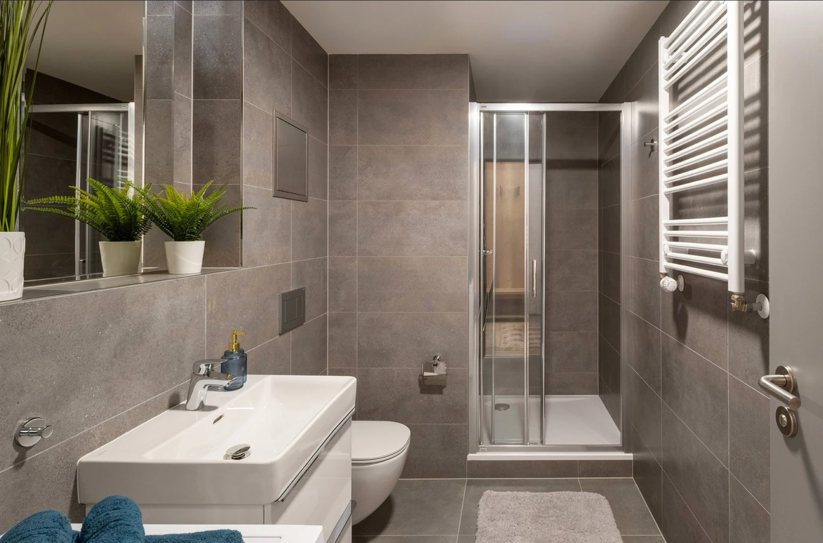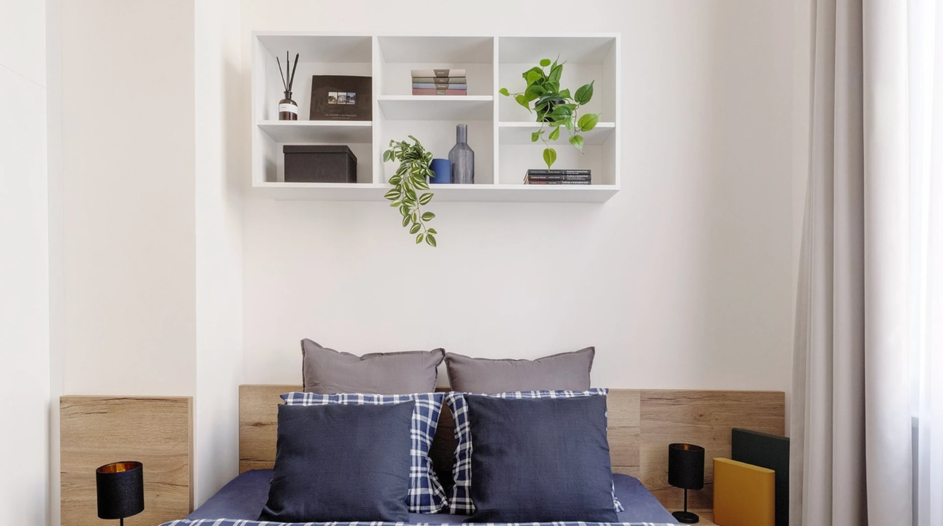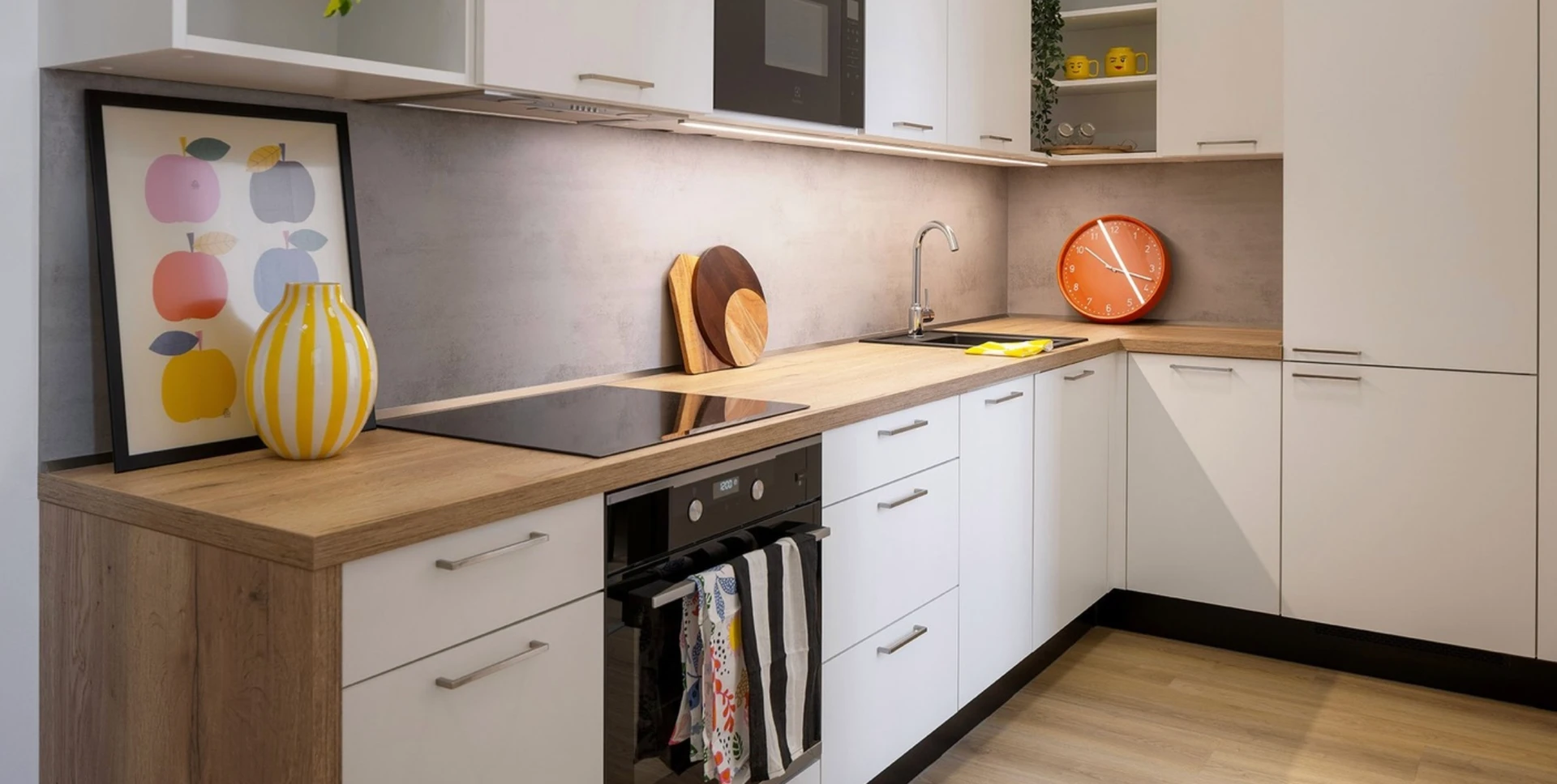 Bright flat with two separate rooms in the heart of Prague. Spacious shared living room comes with a large kitchen, dinig table for 6 persons, folding sofa and a TV set. The entry foyer offers multiple storage compartments with LED lighting.
